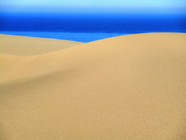 With one step back for every two steps forward, we sluggishly traipsed up the dune’s gradual windward side, and eventually reached its smooth-edged summit. From the top of the dune, the entire Guadalupe-Nipomo Dunes Complex unrolled below us. Beyond the dunes, white frothy waves lathered the 18-mile arc of the gilded shoreline. With binoculars, we spotted the spout of a grey whale, before it surfaced against a profoundly blue backdrop.