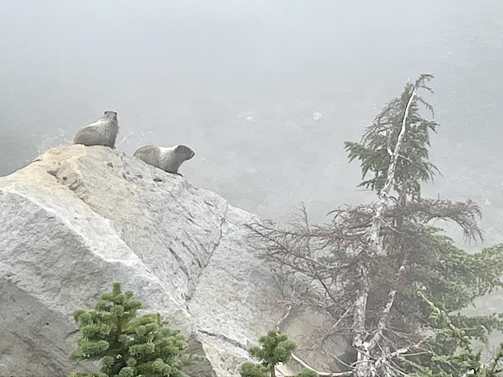 Mount Rainier is also a dangerous mountain to climb. Since summit attempts require a perilous glacier traverse, we stayed on the mountain’s lower trails. On our second day in the National Park, we hiked up from the Paradise Visitor Center on Rainier’s south side. Unfortunately, we never saw the sun or the fog-shrouded mountain peak.