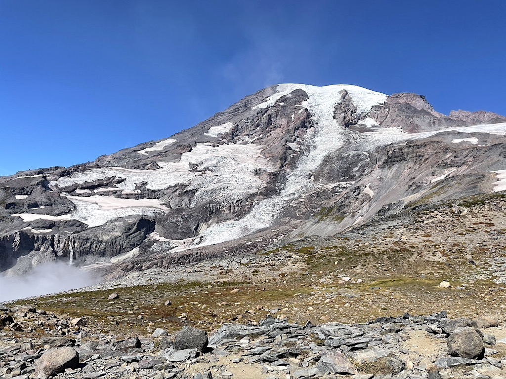 On the third day, the fog lifted and the grandeur of Mount Rainier was revealed. From the 6-mile Skyline Loop Trail, the greatest of the Cascades stood tall, mantled in glaciers, and bathed in sunlight. Also visible on the southern horizon was our final Washington Cascade destination of Mount St. Helens.
