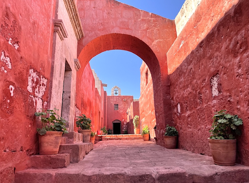In the heart of Arequipa’s historic center, the Spanish built a walled city within the city. Inside the five-acre stone fortress, the Santa Catalina Monastery sheltered cloistered Dominican nuns from wealthy Spanish families. Constructed in the Spanish-Muslem Mudéjar style, the white sillar building stones were thickly painted in vivid ochre and crimson tones.