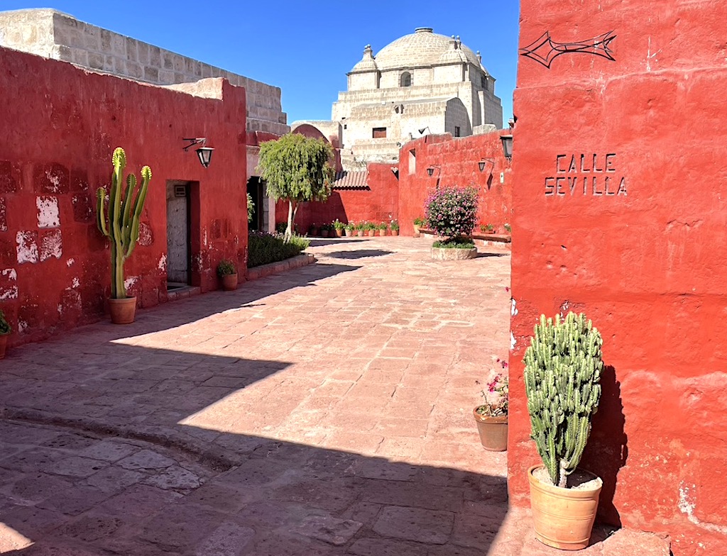 Nicknamed the “white city” because it was originally populated by white-skinned Spanish Caucasians, and constructed almost entirely of white sillar building stone, Arequipa is a radiant city surrounded by three dramatic active volcanos. Despite frequent earthquakes and occasional volcanic eruptions, we felt calm, cool and relaxed as we leisurely admired the history, culture, and Spanish colonial architecture in Perú’s second largest municipality.