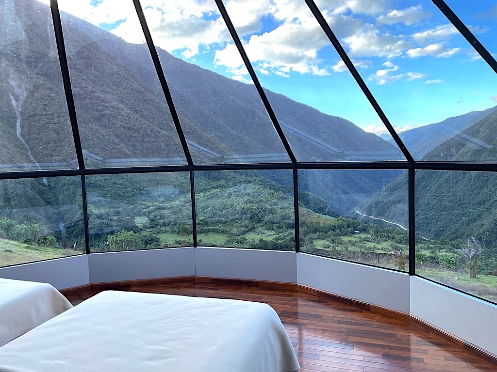 From Salkantay Pass, we descended a whopping 5,512 feet (1,680 m) in elevation over the next six hours. After the steep climb to Salkantay Pass and long downhill hike into camp, we were treated to another of Donato’s substantial meals and a different glass-enclosed bedroom, this time with a private bathroom and hot shower!