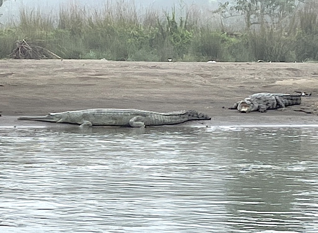 Gharial and marsh mugger crocodiles on Ladhari River, Chitwan National Park