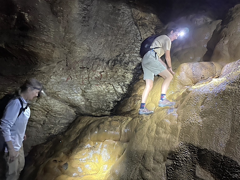 Geologically, wherever there is limestone, there are often caverns. Down a steep and slippery hiking trail from Bandipur, we found Siddha Cave, the largest cavern in Nepal. While underground, we had fun clambering over flowstone formations and repelling with ropes.