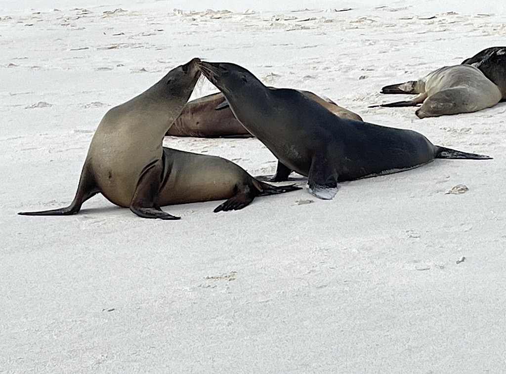 Our cabin was small but comfortable, despite the occasionally rough seas, Ann. Those adorable blue-footed boobies really won us over. The blue feet are so showy and their high-stepping mating dance was hysterical. Of all the wonderful wildlife encounters we experienced, the most memorable was snorkeling with the sea lion pups. As you will appreciate, they look and act like playful underwater dogs, with their svelte bodies, whiskered noses, and big brown eyes. When excited, they would race around us like puppies with the zoomies.